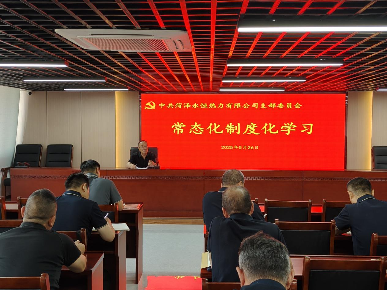 為深入學習貫徹習近平新時代中國特色社會主義思想,進一步強化黨員干部作風建設,5月26日,菏澤永恒熱力有限公司黨支部組織開展“嚴守紀律底線 砥礪擔當作為”“1+1+N”主題黨日活動。黨支部書記朱瑞主持會議,全體黨員、入黨積極分子參加。