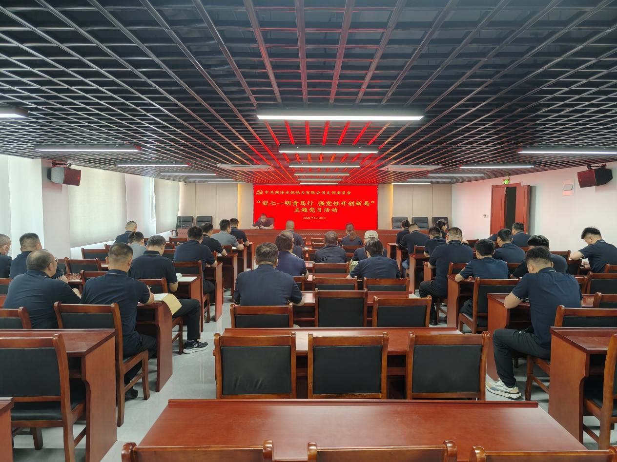 為深化黨紀教育,強化使命擔當,6月30日,菏澤永恒熱力有限公司黨支部組織開展“迎七一明責篤行,強黨性開創新局”主題黨日活動。黨支部副書記孔慶凱主持會議,全體黨員、入黨積極分子參加。