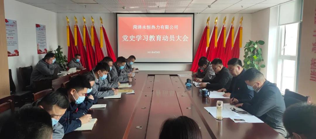 為進一步提高黨員干部學黨史、強信念的主動性和積極性,推動黨史學習教育真正學有所悟、學有所成,4月8日,菏澤永恒熱力召開黨史學習教育動員大會,對黨史學習教育進行專題安排部署。會議由公司黨支部書記、董事長肖培飛主持,中層副職以上干部、全體黨員、入黨積極分子共計44人參加了會議。
