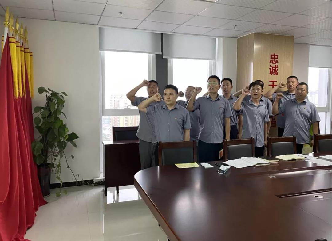 最后,黨支部書記肖培飛同志代表黨支部為十位過“政治生日”的黨員贈送生日賀卡,送上組織的祝福,讓黨員同志切實感受到黨組織的關心與溫暖。由黨支部組織委員劉群生同志領誓,面對鮮紅的黨旗,舉起右手、緊握拳頭、莊嚴宣誓,“我志愿加入中國共產黨,擁護黨的綱領,遵守黨的章程……”鏗鏘的誓詞,讓在場的每一位黨員都得到了精神的洗禮和黨性的錘煉。