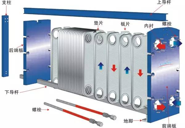 板式換熱器的墊片在使用時如果發生滲漏、斷裂、老化等現象,要及時更換。更換應按以下順序進行。