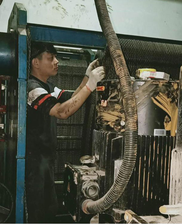 下午4時左右,在天闊逸城小區的換熱站內,家屬院角落處的供熱設備機房內悶熱狹小,空氣流通不暢,剛進去一小會就已經汗流浹背。運營管理四部部長馬成喜正在和部門同事們清洗換熱器,沖洗換熱片時,污漬大片濺到身上、衣服上,但是現場無一人抱怨,大家分工協作,輪流沖洗。