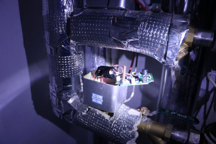 3日下午5時許,菏澤永恒熱力工作人員和牡丹派出所民警共同來到御河丹城小區31號樓某單元的管道井發現,預付費智控閥已經被破壞,電機已被拆除,暖氣閥門也被私自打開,機械式熱能表顯示進回水溫差5.3度,流量925.5立方米,流速每小時0.171立方米。