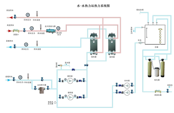 8.1 水-水熱力站熱力系統圖:
