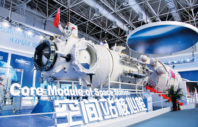 黨的十八大以來,中央企業(yè)認真落實創(chuàng)新驅(qū)動發(fā)展戰(zhàn)略,涌現(xiàn)一大批具有世界先進水平的重大科技成果。圖為2018年11月6日,在珠海舉辦的第十二屆中國國際航空航天博覽會上展出的由中國航天科技集團研發(fā)的中國空間站核心艙模型。 國務院國資委供圖 代振瑩/攝